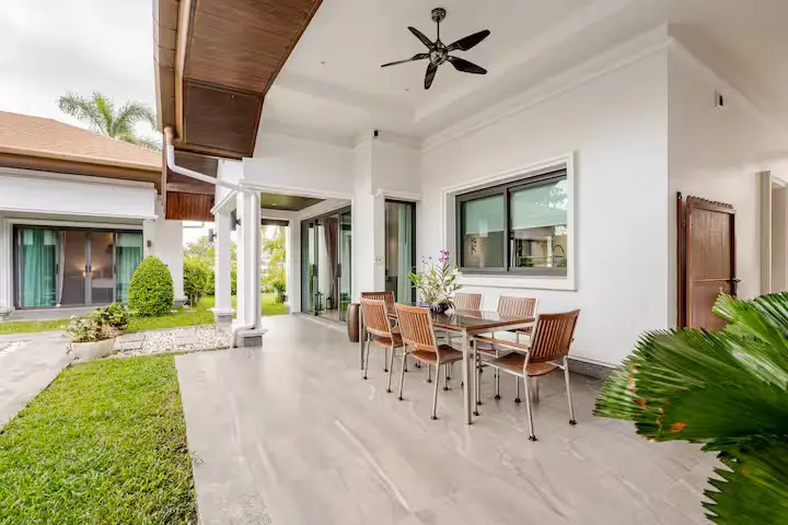 Serviced 4-Bedroom Pool Villa for Rent at The S Villa 1, Choeng Thale. Discover The S Villa 1, a luxurious 4-bedroom, 5-bathroom pool villa located in Choeng Thale Soi 4. Designed for a premium lifestyle, this property features 24-hour CCTV, high-speed 3BB Wi-Fi (1 Gbps), and Cable TV included in the rental package.