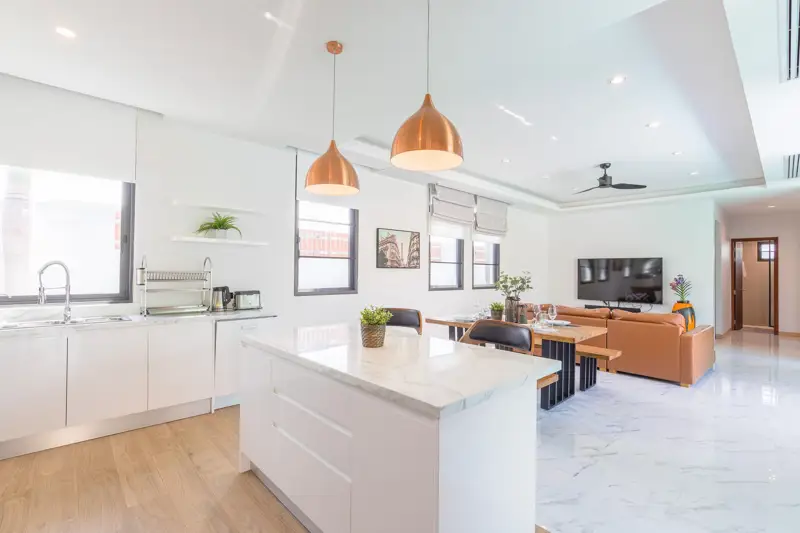 The rental also covers pool and garden maintenance (2 times/week) and monthly pest control. Please note there are mandatory extra fees: Cleaning Service (5,000 THB/month), which includes weekly cleaning and linen/towel changes. Utilities are charged based on usage: Electricity (7 THB/KW) and Water (50 THB/Cube). Strict conditions apply: No pets, no sub-leasing, and furniture must not be moved.