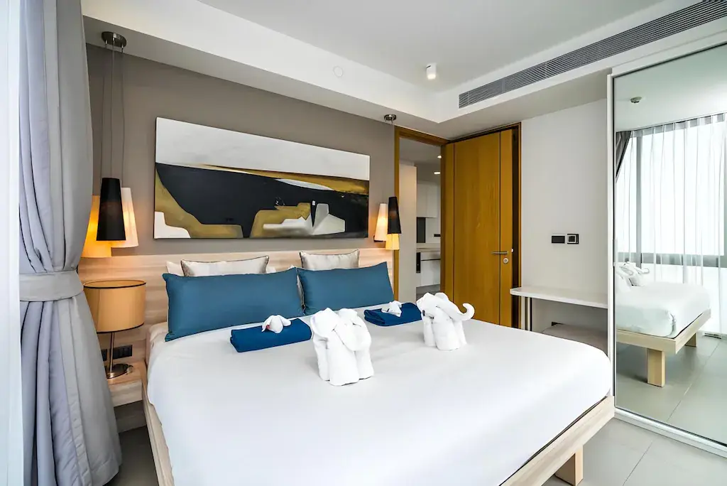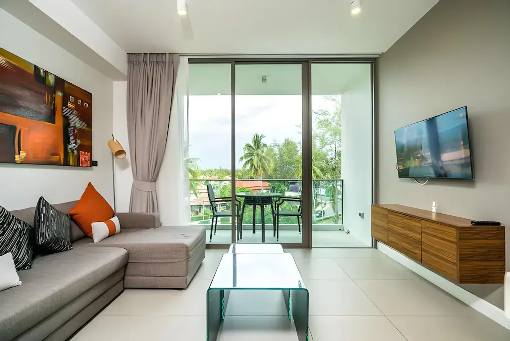 Ocean Stone is a modern tropical style for a vacation home; it is very stylish with white and brown color tones. It is simple and unique, bringing nature as a decorative element. Besides, it is close to Bangtao Beach and condo that focuses on managing the living space to be spacious to accommodate the residents' relaxation. The interior is spacious and fully furnished, allocated spaces for maximum utility. When you enter the room, you will find an open kitchen located opposite the living room. As for the bedroom, there is an en-suite bathroom with an airy and comfortable atmosphere with a ceiling height of 2.70 meters. The kitchen and bathroom are decorated with popular furniture brands from Teka and Siemens, which is durable, strong, and lasts for a long time.